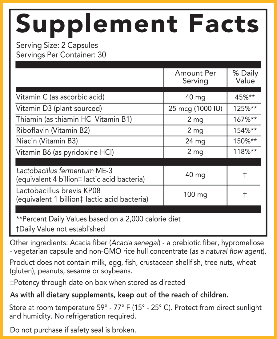 The IMMUNE & VITALITY* blend pairs ME-3 with Lactobacillus brevis KP08, a novel Japanese probiotic strain, which supports normal IFN-production. Together, ME-3 and KP08 provide highly synergistic immune system effects— supporting both the health of immune system cells and their balanced activity.*