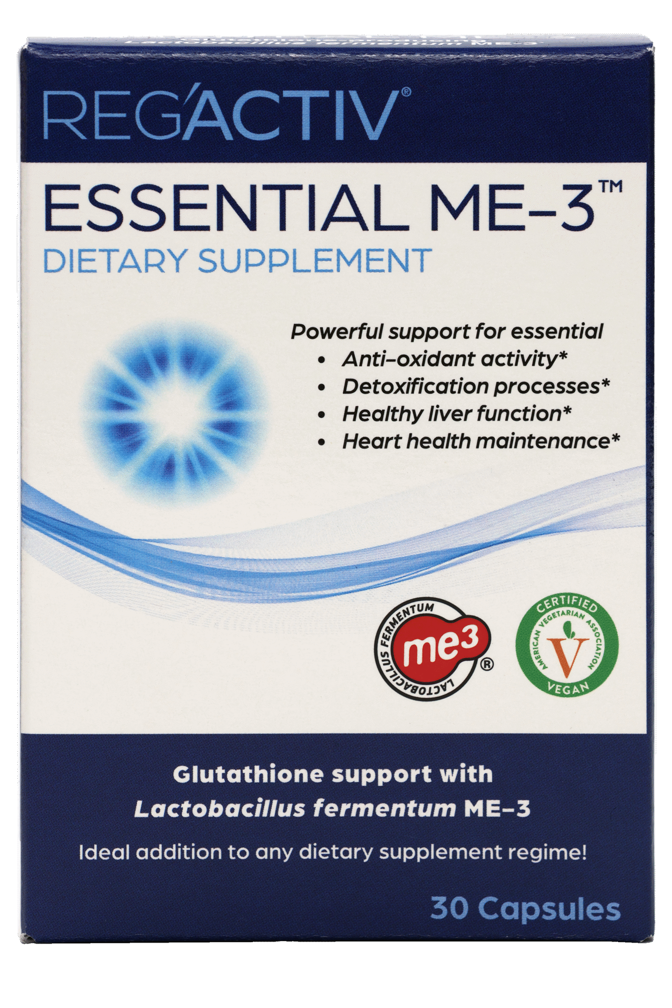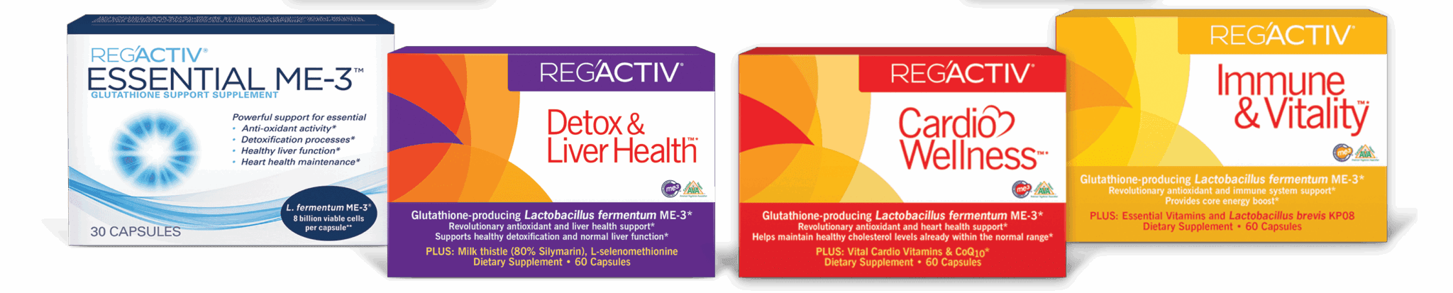 Essential Formulas named the brand Reg´Activ®, short for “Active Regeneration,” because ME-3 promotes the production and recycling of glutathione, leading to higher levels of active glutathione and stronger immune support.